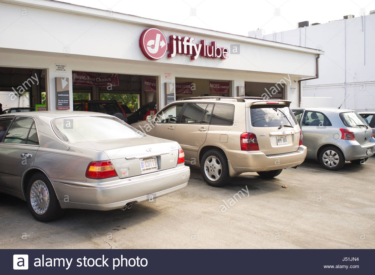 Automobiles In Line For Service At Jiffy Lube Honolulu Oahu Stock Photo Alamy