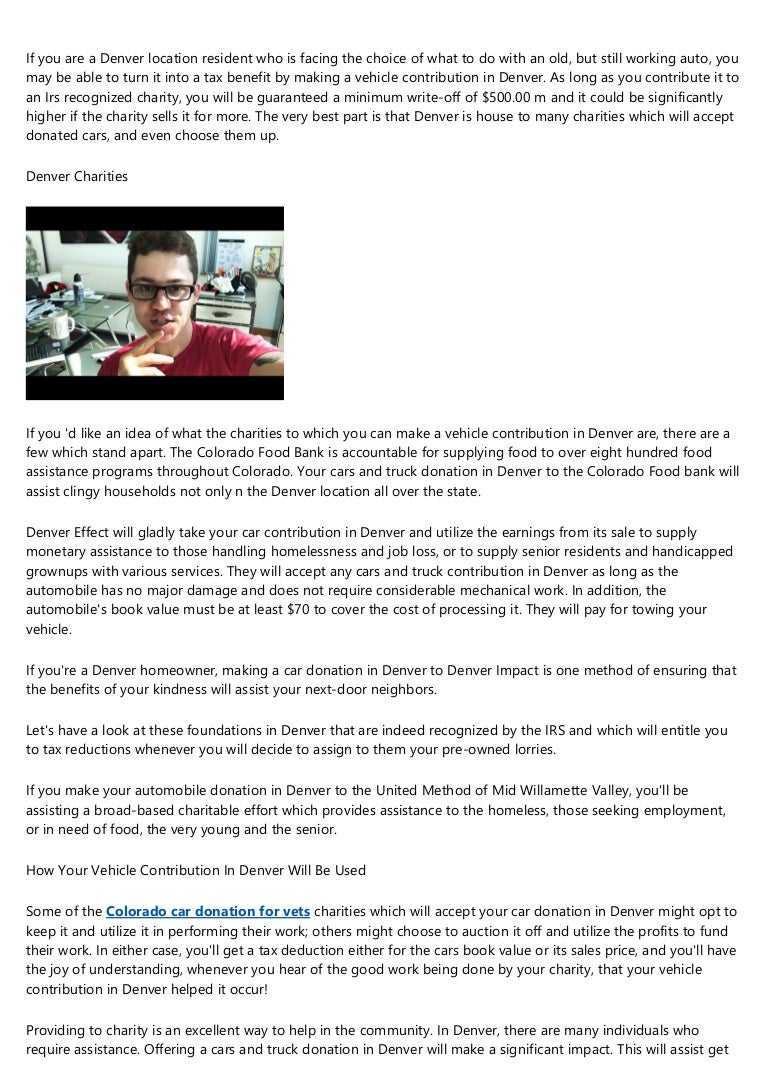 We not only help you contribute to a charity but we also concentrate on providing an easy way to local non-profits that are small that they can concentrate on their important work to accept donations. Donate it to Rocky Mountain PBS instead. How Do I Donate A Car In Colorado.